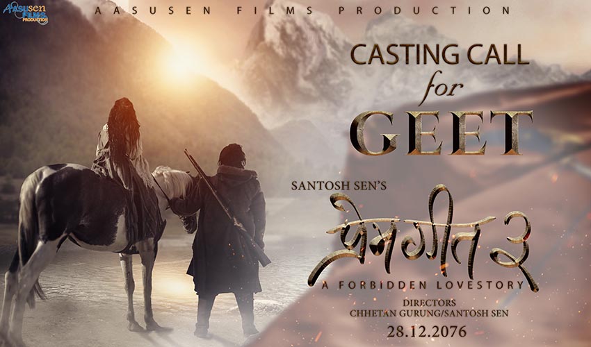 फिल्म । दर्शकले रुचाएको सिरिज हो -‘प्रेमगीत’। यसै सिरिज मार्फत सन्तोष सेन निर्माताको रुपमा स्थापित भए भने प्रदीप खड्कालाई पनि यहि सिरिजले स्टार बनायो । गीतसंगीत सफल भएकै कारण फिल्मले दर्शकको साथ् पायो । फिल्मले आसुसेन फिल्मलाई स्थापित गर्न त सफल भयो तर घाटाबाट भने बचाउन सकेन । तर , पनि निर्माता सन्तोष सेन लगातार यसको सिरिज निर्माणमा छन् । ‘प्रेमगीत २’ पछि निर्माता सेन यसको तेस्रो सिरिजको तयारीमा छन् । फिल्ममा प्रदीपले नै प्रेमको रुपमा निरन्तरता पाउने पक्का भईसकेको छ भने यतिबेला गीतको खोजि निर्माण पक्षले गरिरहेको छ । दोस्रो सिरिजमा नायिकाको विषयलाई लिएर चर्को टिप्पणी भएपछी यतिबेला निर्माण पक्षले कास्टिङ कल गरेको छ । छेतेन गुरुङ र ‘प्रेमगीत’ सिरिजका निर्माता सन्तोष सेनले मिलेर फिल्मको निर्देशन गर्ने फिल्मको लागि अब नयाँ अनुहार लिने भएको छ । फिल्म निर्माण कम्पनी आसुसेन फिल्मस्ले अभिनेत्रीका लागि अडिसन आह्वान गरेको हो । सोमवार निर्माता सेनले जारी गरेको एक विज्ञप्तीमा १८ वर्ष भन्दामाथि र २५ वर्ष नपुगेका युवतीहरुले फिल्मको लिड क्यारेक्टर ‘गीत’ का लागि अडिसन दिन सक्ने उल्लेख छ । आउँदो जेठ १० गतेसम्म www.aasusenfilms.com मा गएर फारम भर्न सकिने वा filmsaasusen@gmail.com मा सम्पर्क गर्न सकिने निर्माण पक्षद्वारा जारि विज्ञप्तिमा उल्लेख छ । फिल्मको मुख्य अभिनेत्री हुन इच्छुकले हालै खिचिएको चारवटा स्पष्ट अनुहार देखिने तश्बिरसहित आफ्नो बायोडाटा पठाउनु पर्नेछ । भने, उचाई ५.२ देखि ५.७ सम्म हुनुपर्नेछ । आवेदन आएको मध्येबाट उत्कृष्ट २० लाई फाइनल अडिसनका लागि छानिने र एक जनालाई अभिनेत्रीको रुपमा छनोट गरिने जारी विज्ञप्तीमा उल्लेख छ । यस फिल्मको कथा २ सय वर्ष पुरानो रहेको बताइएको छ । फिल्मलाई ‘निषेध गरिएको प्रेमकथा’ भनिएको छ । झण्डै एक वर्षदेखि फिल्मको स्क्रिप्टको काम भइरहेको र अबको दुई हप्तामा पूरा हुने निर्माता सेनले बताएका छन् । निर्माण पक्षले मोडल नीति शाहलाई ‘गीत’ बन्न अफर गरेको थियो तर उनले फिल्म नखेल्ने भएपछी कास्टिङ कल गरेको छ ।