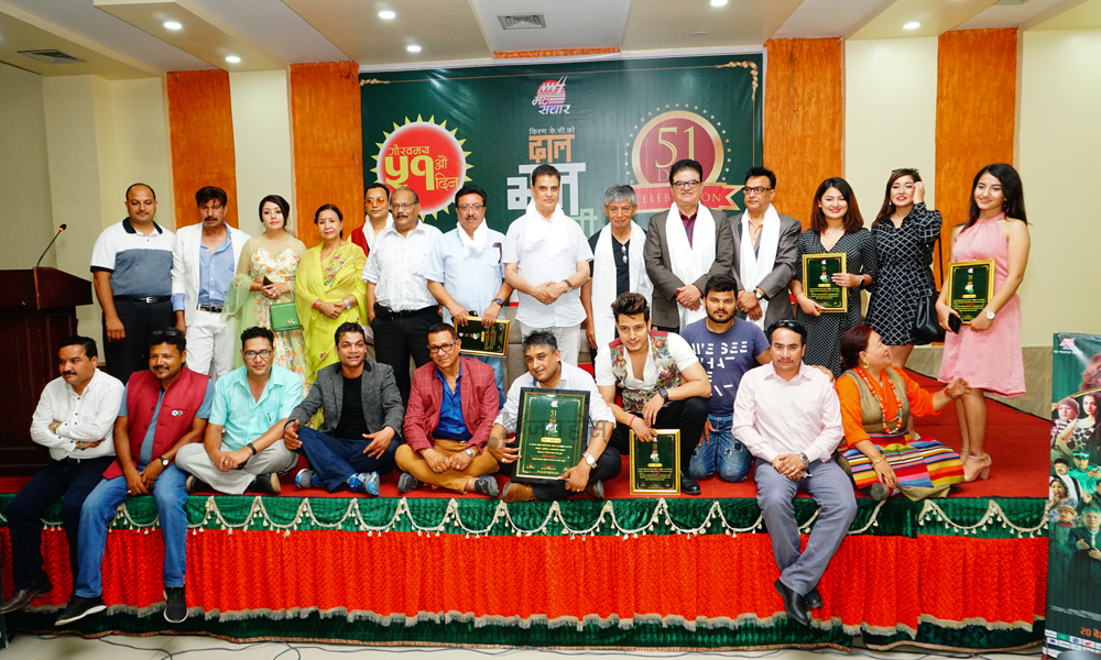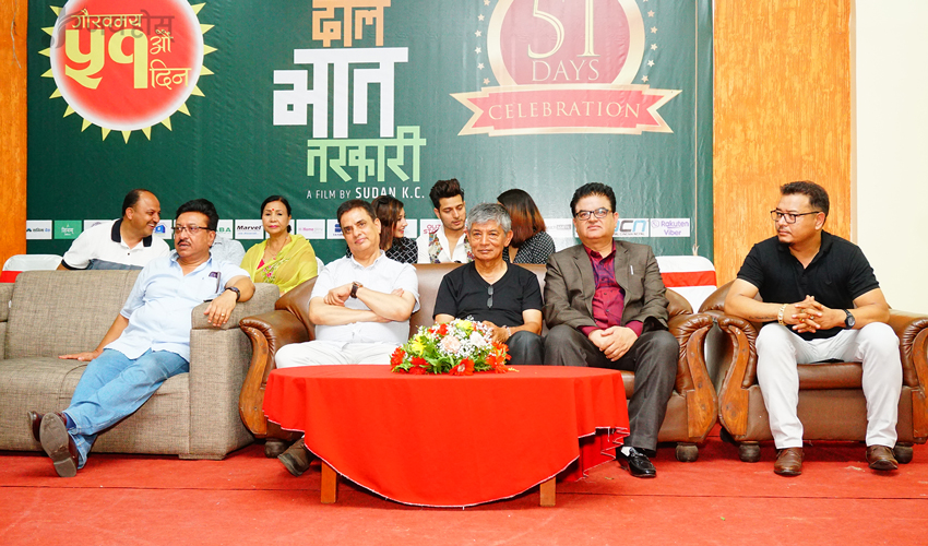 फिल्म । गत वैशाख २० गतेबाट प्रदर्शनमा आएको फिल्म ‘दाल भात तरकारी’ ले राजधानी स्थित ३ हलमा ५१ औ दिन पार गरेको छ । गुण सिनेमा ग्वार्को , गोपीकृष्ण मुभिज चबाहिल र अष्टनारायण पिक्चर्स बाइपासमा यसले प्रदर्शनको ५१ औ दिन पार गरेको हो । ५१ दिनको आयोजित समारोहमा फिल्मकर्मी , मिडियाकर्मी र दाल भात तरकारी युनिटको उपस्थिति रहेको थियो ।