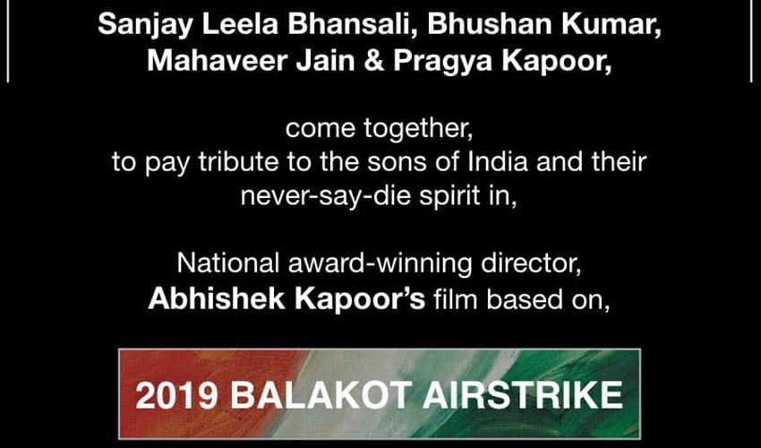 A story that celebrates the accomplishments of The Indian Air Force🇮🇳#2019BalakotStrike @PMOIndia @DefenceMinIndia @IAF_MCC #SanjayLeelaBhansali @itsBhushanKumar @AbhisheKapoor #MahaveerJain, @PragyaKapoor_ @Tseries @gitspictures @SundialEnt @prerna982 pic.twitter.com/A5Oh8xpMyB