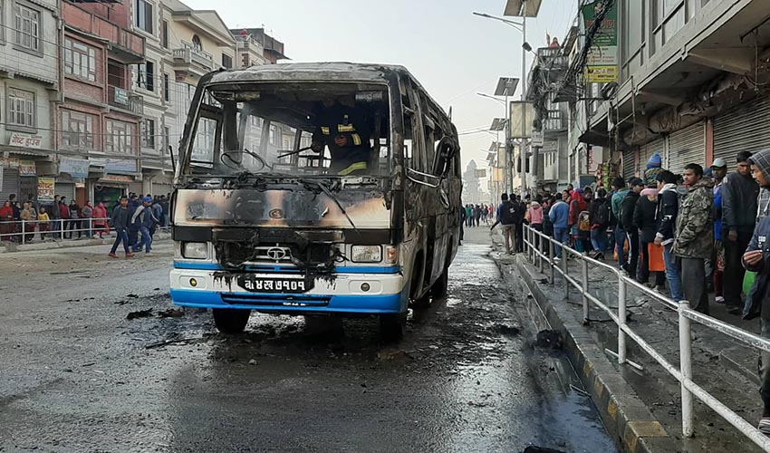 पशुपति क्याम्पसमा अध्ययन गर्ने विद्यार्थीलाई ठक्कर दिएपछि क्याम्पसका विद्यार्थीहरुले अर्को गाडीमा आगजनी गरेका थिए । अहिले आगो पूर्ण नियन्त्रणमा लिइएको छ भने व्यापक प्रहरी परिचालन गरिएको छ । नेविसंघका पूर्वकेन्द्रीय सदस्य चेतन थापा मगर र राकेश श्रेष्ठलाई प्रहरीले पक्राउ गरेको छ । त्यसको विरोधमा नेविसंघले प्रदर्शन गरेको छ ।