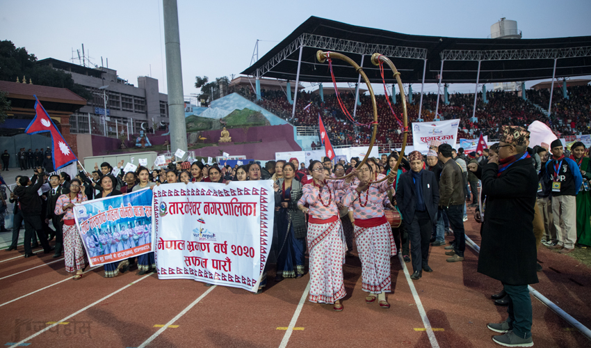 देश । नेपाल सरकारले जनवरीको पहिलो दिन नेपाल भ्रमण वर्ष २०२० को उद्घाटन गरेको छ । बुधबार राजधानीको दशरथ रंगशालामा आयोजित कार्यक्रममा राष्ट्रपति विद्यादेवी भण्डारीद्वारा नेपालको संस्कृति झल्कने नाचगान र सांगीतिक कार्यक्रमसहित नेपाल भ्रमण वर्षको उद्घाटन गरिएको हो । नेपाली कलाकार र सांगीतिक समूहले विभिन्न सांस्कृतिक विविधता झल्किने मौलिक प्रस्तुति प्रदर्शन गरेका थिए । सरकार यस वर्ष २० लाख विदेशी पर्यटक भित्र्याउने लक्ष्यमा छ ।