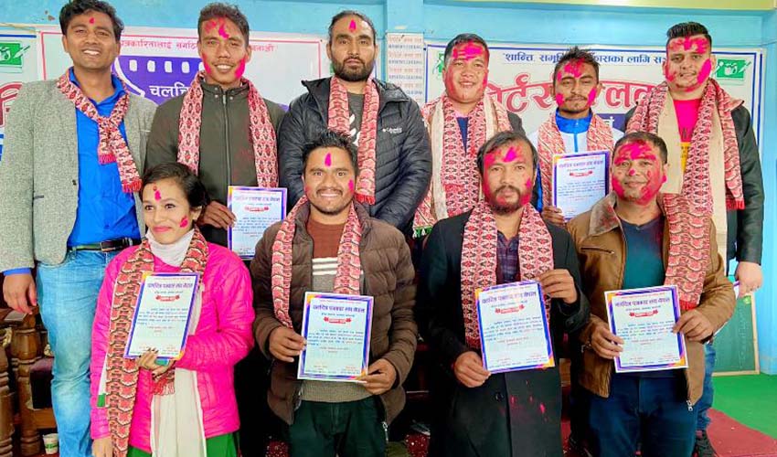 देश । चलचित्र पत्रकार संघ नेपाल दाङ शाखाको अध्यक्षमा शिव पुन निर्विरोध निर्वाचित भएका छन । आउँदो केन्द्रीय निर्वाचनलाई लक्षित गर्दै संघको सोमबार भएको चौथो अधिबेशनबाट सर्वसम्मत रुपमा पुन अध्यक्षमा चुनिएका हुन । उनले आउँदो तिन वर्षको लागि संघको नेतृत्व गर्नेछन् । यसैगरी संघको उपाध्यक्षमा सन्तोष केसी, सचिवमा पुर्ण केसी, सह–सचिवमा निरला अर्याल गैरे, कोषाध्यक्षमा तिर्थराज चौधरी रहेका छन् । सदस्यहरूमा भुपेस वली, मिना खड्का, राजेश खत्री र आशिष केसी सहित नौं सदसीय कार्यसमति सर्वसम्मत चुनिएका हुन् ।