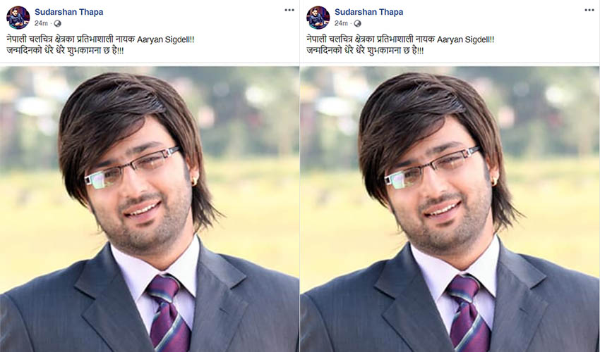 फिल्म । अभिनेता आर्यन सिग्देललाई निर्देशक सुदर्शन थापाले जन्मदिनको शुभकामना दिएका छन् । फिल्मनगरीमा ‘मेरो एउटा साथी छ’ मार्फत सुदर्शनले निर्देशनमा पाइला टेकेका थिए भने आर्यन स्थापित अभिनेतामा परेका थिए । त्यसपछि के यो माया हो , मेरो लभ स्टोरी र मधुमासमा आर्यन र सुदर्शनले सहकार्य गरेपनी त्यसपछि भने यी दुइले साथ् काम गरेका छैनन् ।