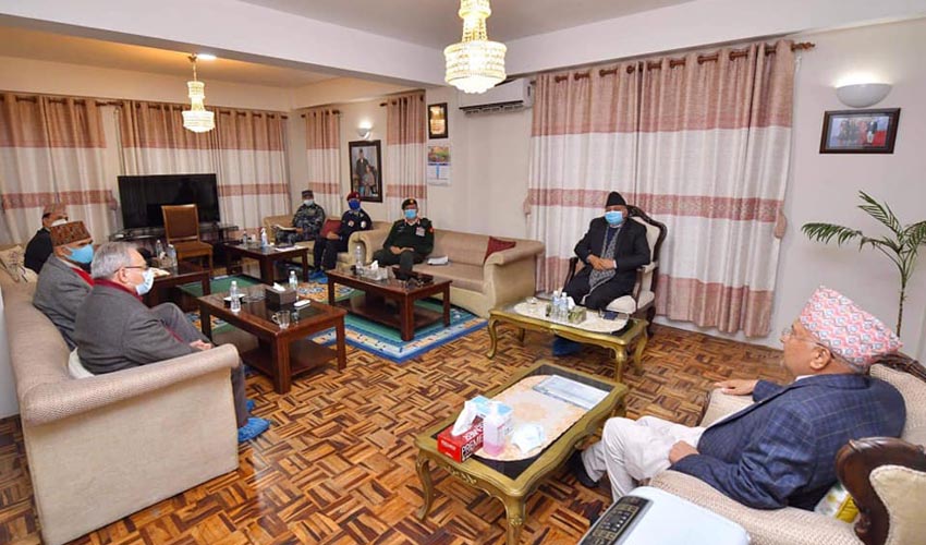 प्रधानमन्त्रीज्यूले सबै सुरक्षा निकायका प्रमुखहरूसँग बदलिँएकाे परिस्थितिका बारेमा छलफल गर्नुका साथै आवश्यक निर्देशन दिनुभएको छ ।