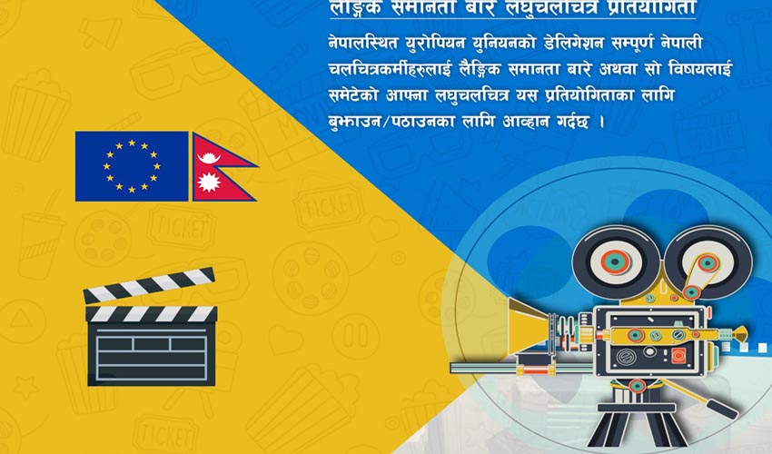 फिल्म । नेपालस्थित युरोपियन युनियुनको डेलिगेसनले लैङ्गिक समानताबारे लघु चलचित्र प्रतियोगिताको घोषणा गरेको छ । युरोपियन युनियनले दसौँ संस्करणको नेपाल युरोपियन युनियन फिल्म फेस्टिभल (नियुफ) को सहायक कार्यक्रमको रुपमा यो प्रतियोगिताको घोषणा गरेको हो । यही असोजको १ देखि ९ गतेसम्म नेपाल युरोपियन युनियन फिल्म फेस्टिभल (नियुफ)को दसौँ संस्करण भर्चुअल रुपमा आयोजना हुँदैछ ।