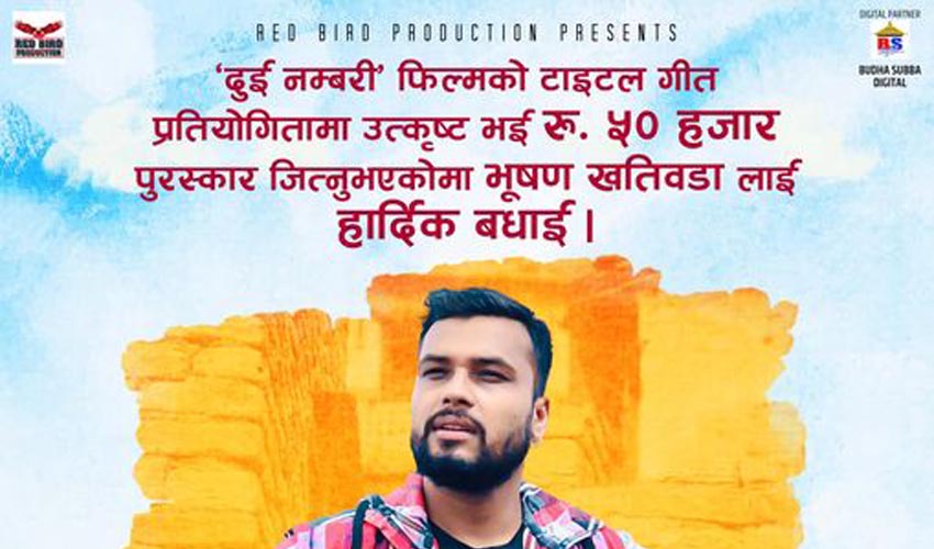 ‘२ नम्बरी’को शिर्ष गीत तयार पारेर भुषणले जिते ५० हजार