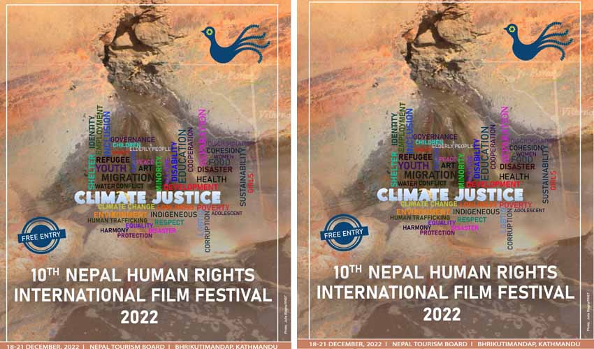 फिल्म । सामाजिक न्याय र मानवअधिकारलाई प्रश्रय गर्ने उद्देश्यले ‘नेपाल मानव अधिकार अन्तर्राष्ट्रिय चलचित्र महोत्सव’ को १० औं संस्करण आयोजना हुने भएको छ । मानव अधिकार चलचित्र केन्द्रको आयोजनामा पुस ३ देखि ६ (१८–२१ डिसेम्बर ) सम्म काठमाडौंस्थित नेपाल पर्यटन बोर्डको हलमा सञ्चालन हुने महोत्सवमा ‘जलवायु परिवर्तन र पर्यावरण न्याय’ को नारा दिईएको छ । महोत्सवको उद्घाटनमा शान्ता नेपाली निर्देशित वृत्तचित्र ‘क्लाईमिङ ट्याम्पेचर्स, टप अफ द वर्ल्ड’ र समापन समारोहमा दिपक रौनियार निर्देशित सर्ट फिल्म ‘फोर नाइट्स’ देखाइनेछ ।