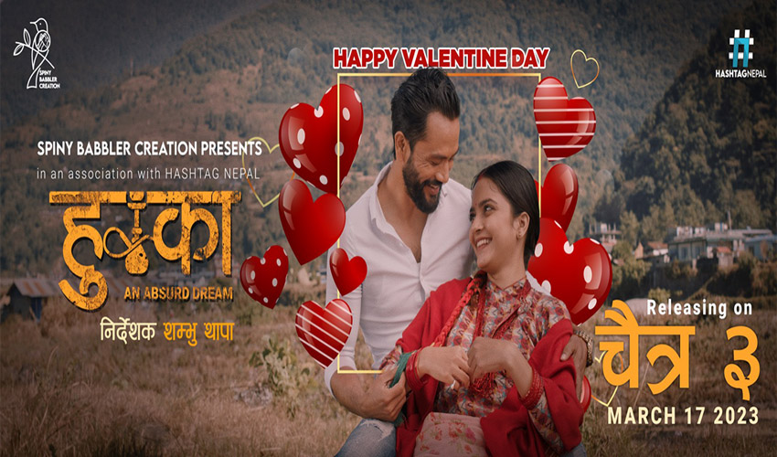 फिल्म । आगामी चैत ३ गते रिलिज हुने फिल्म ‘हुक्का : एन एब्जर्ड ड्रिम’ले भ्यालेन्टाइन डे अर्थात प्रेम दिवसको अवसर पारेर फस्टलुक सार्वजनिक गरिएको छ । स्पाइनी बाबलर क्रिएसनले ह्यासट्याग नेपालसँग सहकार्य गर्दै निर्माण गरेको फिल्ममा शम्भु थापाको निर्देशन छ । फस्टलुकमा फिल्मका प्रमुख कलाकार तेज गिरी र अशु न्यौपानलाई रोमान्टिक भावमा प्रस्तुत गरिएको छ । फिल्ममा प्रमिला र तेजका अलावा प्रकाश घिमिरे अशु न्यौपाने, तलिशा गुरुङ, निश्चल विमल, एलिशा विक र सन्तोषकुमार आत्रेयको पनि अभिनय छ ।