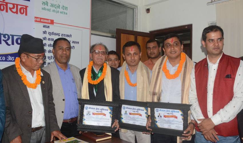देश । राष्ट्रिय समाचार समिति (रासस)का पूर्वअध्यक्ष कुलचन्द्र वाग्ले र कार्यकारी सम्पादक सूर्यचन्द्र बस्नेत गृह जिल्लामा पुरस्कृत भएका छन् । नेपाल प्रेस युनियन तनहुँ शाखाले अधिवेशनको अवसर पारेर उहाँहरुलाई आज सम्मान गरेको हो । शाखाको आज आयोजित अधिवेशनका अवसरमा पूर्वअध्यक्ष वाग्लेलाई ‘बलराम बानियाँ स्मृति पत्रकारिता पुरस्कार’बाट पुरस्कृत गरिएको छ । उक्त पुरस्कारको राशि रु १० हजार रहेको छ ।