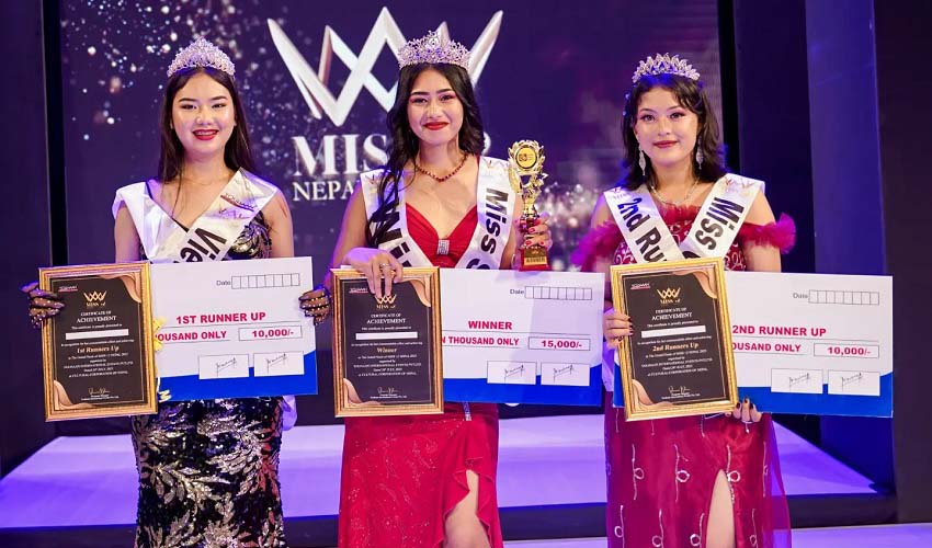 फिल्म । शिक्षा राणा ‘मिस प्लस टू नेपाल २०२३’ घोषित भएकी छन् । प्रतियोगीतामा राणाले १८ प्रतिस्पर्धीलाई पछि पार्दै शिर्ष सहित ‘मिस पर्सनालिटी’ र ‘मिस स्टाइलिस’ विधागत उपाधि समेत हात पार्न सफल भएकी छन् । प्लस टू अध्ययनरत छात्राहरुको प्रतिभा निखार्दै व्यक्तित्व र सौन्दर्य मापनको उदेश्यले आयोजित प्रतियोगीतामा याङ्जी दावा लामाले फस्ट रनरअप र विशाखा श्रेष्ठ सेकेन्ड रनर अप भए । लामाले भ्युअर च्वाइस र पब्लिक च्वाइस उपाधि समेत हात पार्दा श्रेष्ठले मिस कन्फिडेन्टको उपाधि आफ्नो पोल्टामा पारिन् ।