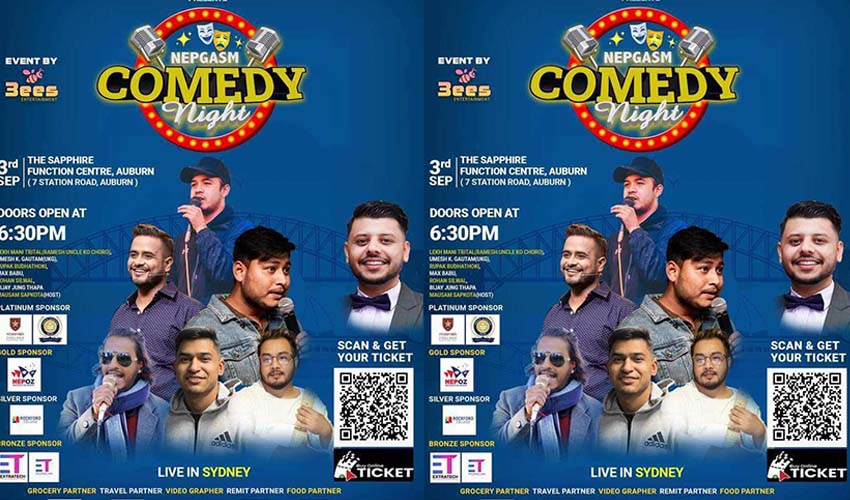 नेपाली कला संस्कृतीको जगेर्ना गर्ने उद्धेश्यका साथ विदेशी भूमिमा रहेका नेपालीलाई मनोरञ्जन दिनसमेत कमेडी नाइटको आयोजना गर्न लागिएको आयोजक संस्था थ्री बिज इन्टरटेन्मेन्टले जनाएको छ । गाईजात्रा र बुवाको मुख हेर्ने पर्वलाई लक्षित गरेर आयोजना गर्न लागिएको कार्यक्रमका लागि टिकटको मूल्य २२ अस्ट्रेलियन डलर कायम गरिएको छ ।