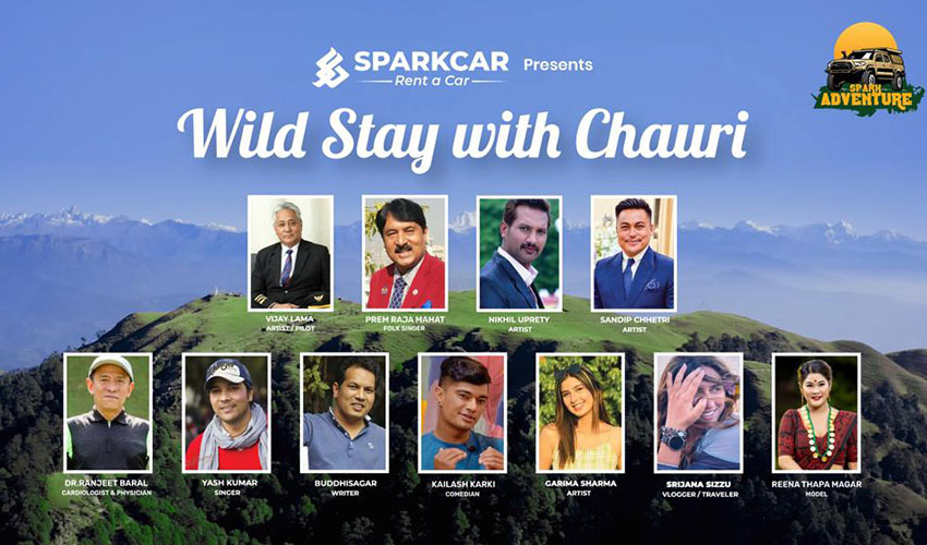 देश । दोलखा र रामेछापको सिमानामा पर्ने शैलुङमा स्पार्क कारले ‘स्पार्क एड्भेन्चर २०२३’ अन्तर्गत आयोजना गर्ने ‘वाइल्ड स्टे विथ चौँरी’मा क्याप्टेन विजय लामा, निखिल उप्रेती, सन्दीप क्षेत्री लगायतका कलाकारले सहभागिता जनाउने भएका छन् । कार्यक्रममा प्रशासनिक एवं सुरक्षा निकायका अधिकारी समेत सहभागी हुनेछन् । प्रचुर पर्यटकीय सम्भावना रहेर पनि चल्तीको गन्तव्य नभएकोले उक्त स्थानको प्रचार प्रसारको लागि कार्यक्रम आयोजना गरिएको आयोजकले बताएको छ ।