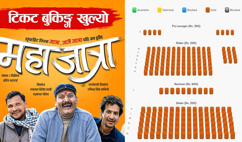 फिल्म । यसवर्षकै प्रतिक्षित फिल्म ‘महाजात्रा’ प्रदर्शनमा आउनु अगावै भरिभराउ हुन् थालेको छ । देशभरका मल्टिप्लेक्सले शो खुलाएसँगै आफूलाई पायक पर्ने स्थानमा दर्शकले टिकेट लिईरहेका छन् । देशभर तीन सय बढी शोमा प्रदर्शन हुने फिल्मको नेपालगञ्जमा रहेको सिने रोयल हलमा शुक्ररबारको पहिलो शो नै हाउसफुल भएको छ ।