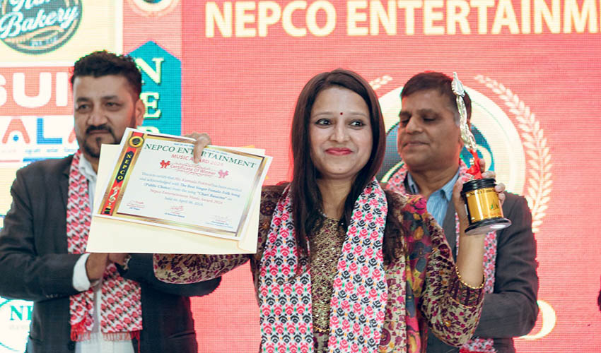 गणतन्त्र नेपालका प्रथम उपराष्ट्रपति परमानन्द झाको प्रमुख आतिथ्यमा भएको कार्यक्रममा गायिका शर्मिला गुरुङलाई ‘राष्ट्रिय गायिका सम्मान’, ख्यामनारायण पौडेललाई ‘राष्ट्रिय व्यवसायी सम्मान’, कमला श्रेष्ठलाई ‘राष्ट्रिय नारी उद्यमी सम्मान’, प्रविण कला राईलाई ‘राष्ट्रिय नारी उद्यमी सम्मान’, होम गैरेलाई ‘राष्ट्रिय नेप्को इन्टरटेन्मेन्ट म्युजिक अवार्ड दर्शक गायक सम्मान’, देवी हमाललाई ‘राष्ट्रिय नारी उद्यमी सम्मान’ प्रदान गरियो ।