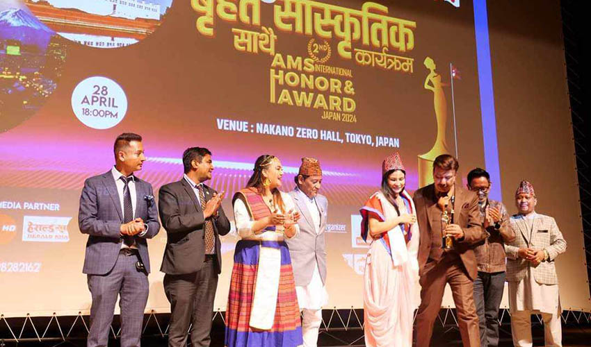 सङ्गीत । दोस्रो संस्करणको एएमएस इन्टरनेसनल अनर अवार्ड तथा सांस्कृतिक कार्यक्रम जापानमा सम्पन्न भएको छ । कार्यक्रममा कलाकार शिव श्रेष्ठ, चलचित्र विकास बोर्डका अध्यक्ष भुवन केसी, संगीत रत्न शम्भुुजित बाँस्कोटा, चेतन सापकोटा, अञ्जु पन्त, कमल खत्री, गजित विष्ट, पत्रकार ऋषि धमला र नरेश भट्टराई सहभागी थिए ।
