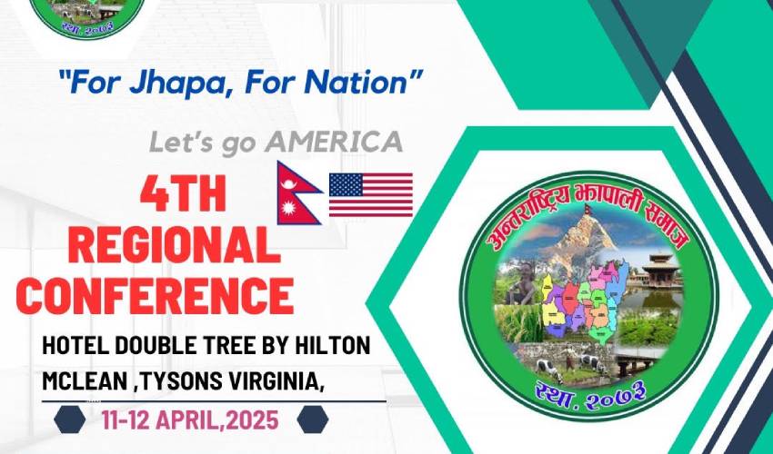 विदेश । संयुक्तराज्य अमेरिकास्थित वासिङ्टन डिसीमा झापालीहरूको संस्था झापालीहरूको चौथो क्षेत्रीय झापाली (अन्तर्राष्ट्रिय) सम्मेलन हुने भएको छ । आगामी सन् २०२५ को अप्रिल ११ र १२ मा हुने सम्मेलनमा अष्ट्रेलिया, कतार, ईजरायल, नेदरल्याण्ड तथा नेपालका झापालीले भाग लिने जनाइएको छ ।