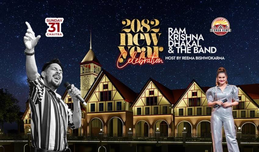 सङ्गीत । नयाँ वर्ष २०८२ सालको पूर्वसन्ध्यामा भक्तपुरको गठ्ठाघरमा रहेको जर्मन होम्सले ‘न्यु इयर इभ’ कार्यक्रम गर्ने भएको छ। गायक रामकृष्ण ढकाल एण्ड ब्याण्डको विशेष प्रस्तुति रहने उक्त कार्यक्रमलाई ‘न्यु इयर इभ एट जर्मन होम्स विथ राम कृष्ण ढकाल’ नाम दिइएको छ । कार्यक्रममा गायक ढकालका अलावा अन्य राष्ट्रिय कलाकारहरूको पनि प्रस्तुति रहने छ ।