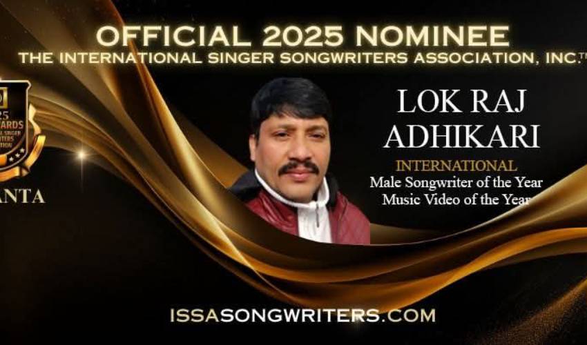 सङ्गीत । गीतकार लोकराज अधिकारी ‘इन्टरनेशनल सिङ्गर सङ राइटर्स एसोसिएसन (इसा)’ ले हरेक वर्ष संयुक्तराज्य अमेरिकामा आयोजना गर्ने ‘इसा अन्तर्राष्ट्रिय अवार्ड’ को सातौँ संस्करणको दुई विधामा मनोनयनमा परेका छन् । गएको अप्रिल २ मा सार्वजनिक गरिएको मनोनयनमा नेपालबाट गीतकार अधिकारी ‘जिन्दगानी के छ र’ बोलको गीतबाट ‘वर्ष गीतकार पुरुष’ र ‘म्युजिक भिडिओ अफ द इयर’ गरी दुई विधामा मनोनयनमा पर्न सफल भएका हुन् । यो मनोनयन आफ्नो मात्र नभई नेपालकै प्रतिनिधित्व भएको गीतकार अधिकारीले बताए ।