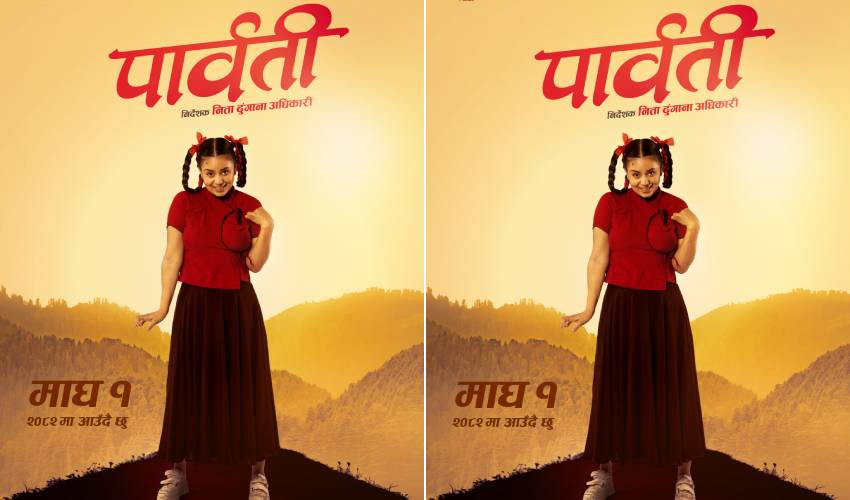 फिल्म । जनै पुर्णिमा र रक्षा बन्धनको अवसरमा निता फिल्म्सको प्रस्तुति नेपाली फिल्म ‘पार्वती’ बन्ने घोषणा गरिएको छ । नायिका निता ढुंगाना अधिकारीको निर्देशनमा बनेको यो फिल्म आगामी माघ १ मा प्रदर्शन हुने निर्माण पक्षले जनाएको छ । सार्वजनिक पोस्टरमा ‘पार्वती’ पहेँलो छातामुनि, सिठी र पानीको बोतल बोकेर गम्भीर मुद्रामा देखिन्छिन्, जसले उनको जीवनका चुनौती र संवेदनशीलताको संकेत गर्छ । अभिनेत्री ढुंगाना गाउँले पोशाकमा हल्का मुस्कान र लजालु भावमा प्रस्तुत छिन्, जसले निराशता, बालसुलभ रमाइलो र जीवनप्रतिको सहज दृष्टिकोण झल्काउँछ ।
