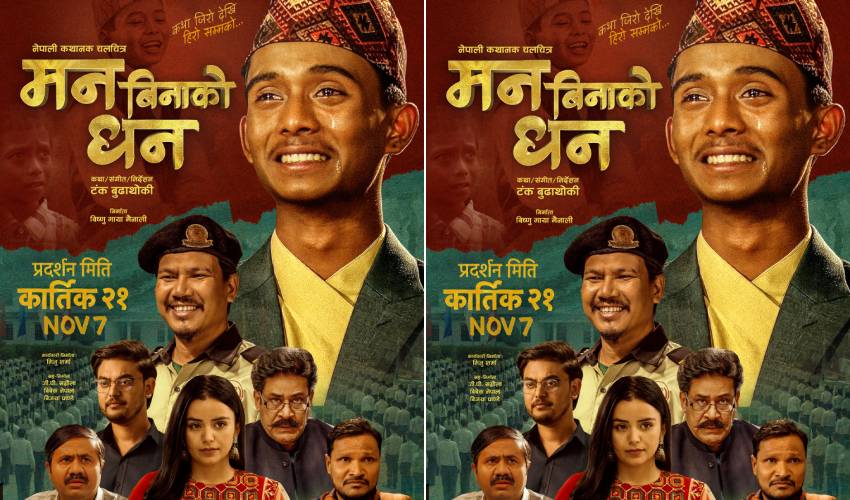 फिल्म । निर्देशक टंक बुढाथोकीले फिल्म ‘मन बिनाको धन’ को नयाँ पोस्टर सार्वजनिक गरेका छन् । पोस्टरमा मुख्य कलाकारहरू अशोक दर्जी, सरोज खनाल, नीता ढुंगाना, रमेश विश्वकर्मा, भोला सापकोटा, बुद्धि तामाङ र रवीन्द्र झा फिचर्ड छन् । यसअघिको पोस्टरमा केवल अशोक दर्जीलाई मात्र प्रस्तुत गरिएको थियो ।