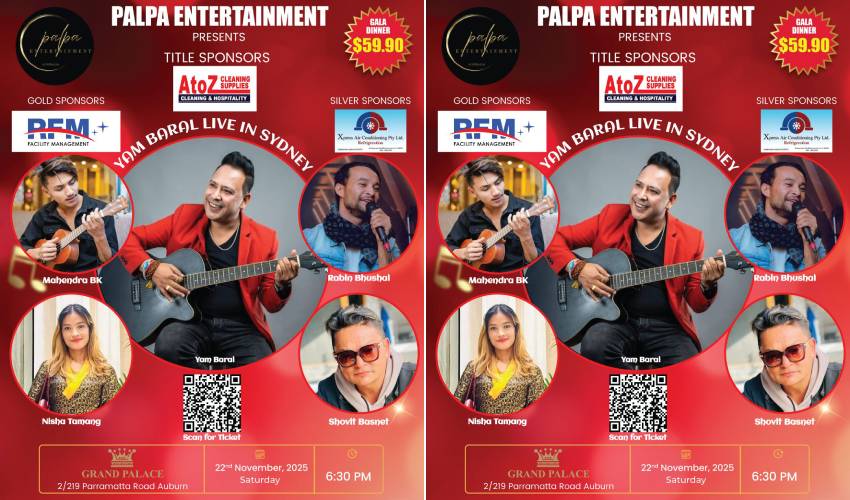 सङ्गीत । अस्ट्रेलियाको सिड्नीमा गायक यम बरालले सांगीतिक प्रस्तुति दिने भएका छन् । पल्पा इन्टरटेन्मेन्टको प्रस्तुतिमा आगामी नोभेम्बर २२ मा आयोजना हुने ‘यम बराल लाइभ इन सिड्नी’ मार्फत उनले दर्शकहरूलाई मनोरञ्जन प्रदान गर्नेछन् ।