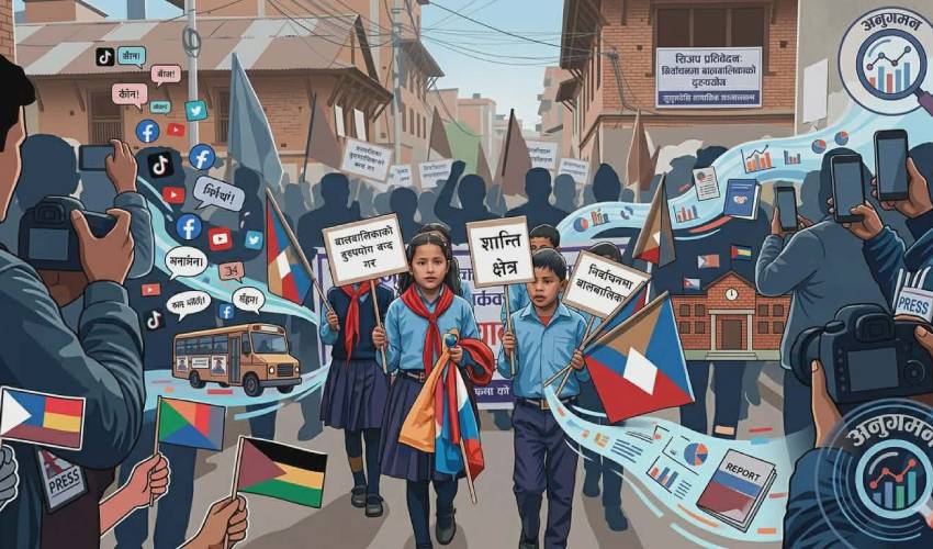 टिकटक, फेसबुक र युट्युब जस्ता प्लेटफर्ममार्फत बालबालिकालाई प्रयोग गरी राजनीतिक सामग्री प्रसारण गरिएको पनि प्रतिवेदनमा उल्लेख छ। विद्यालय पोशाकमै विद्यार्थीलाई जुलुसमा सहभागी गराउने, विद्यालय परिसरमा राजनीतिक कार्यक्रम सञ्चालन गर्ने तथा निर्वाचन प्रयोजनका लागि विद्यालय बस प्रयोग गर्ने जस्ता गतिविधि देखिएका छन्। निर्वाचनपछिको अवधिमा विजय जुलुस र उत्सवमा समेत बालबालिकाको प्रयोग भएको पाइएको छ, जसले उनीहरूलाई राजनीतिक रूपमा संवेदनशील वातावरणमा संलग्न गराएको प्रतिवेदनले जनाएको छ।